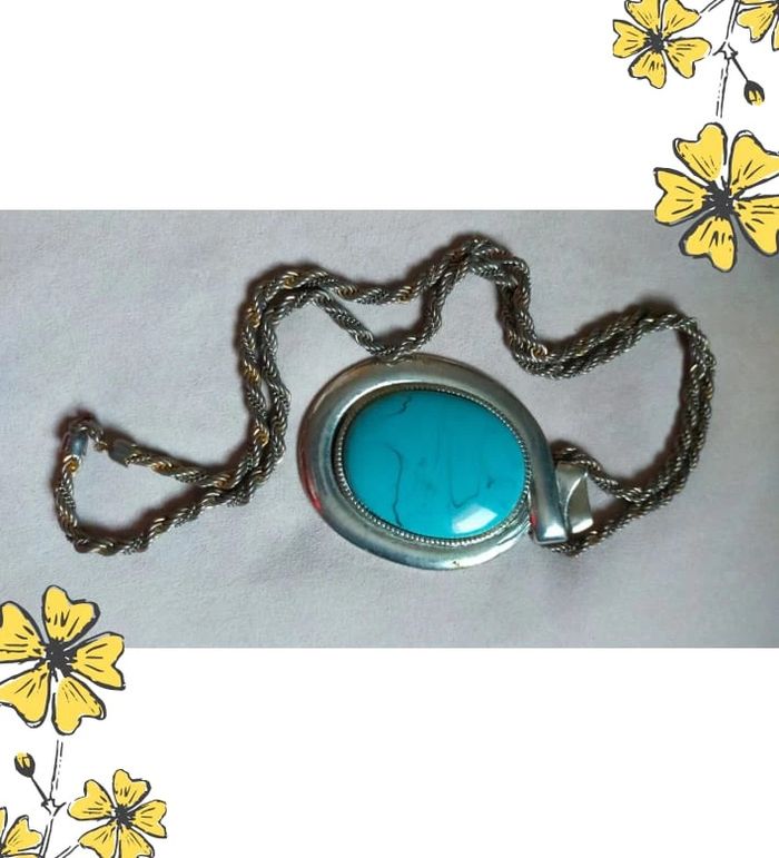 Collier vintage chaîne torsadée et pendentif turquoise - photo numéro 14