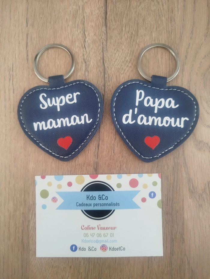 Lot de deux porte-clés coeur Simili cuir Maman d'amour Papa d'amour #Papa #Maman #PorteCle_KdoetCo #Papa_KdoetCo #Maman_KdoetCo
