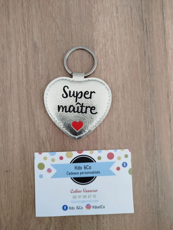 Porte-clé similicuir coeur super maître - photo numéro 1