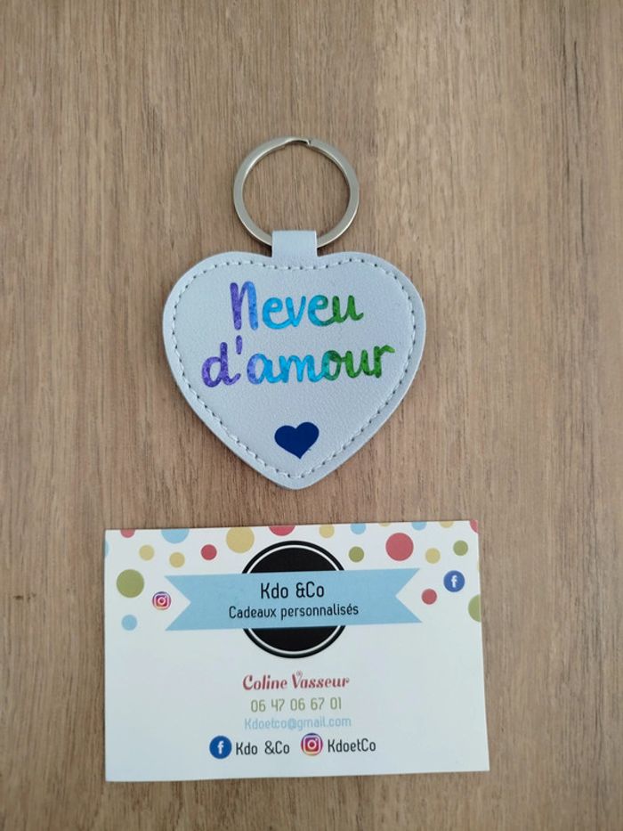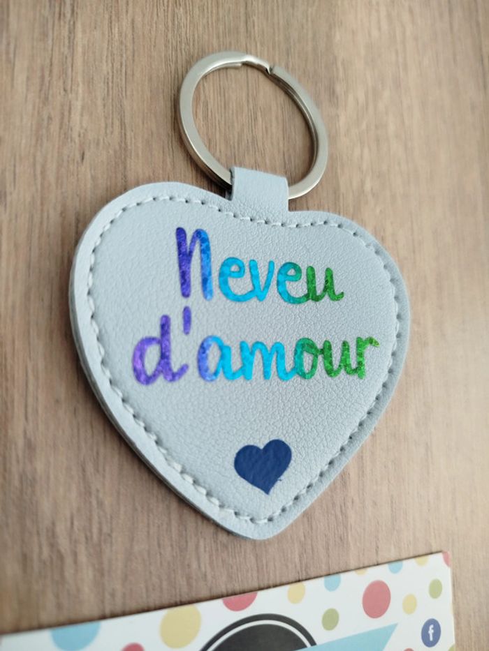 Porte-clé coeur similicuir neveu d'amour - photo numéro 2