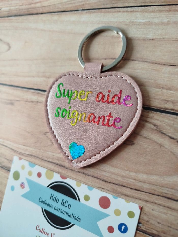 Porte-clé similicuir coeur super aide soignante - photo numéro 2