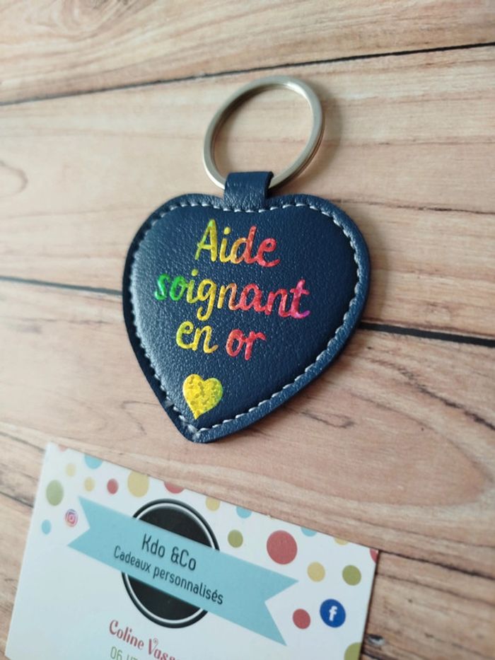 Porte clé simili cuir coeur aide soignant en or - photo numéro 2