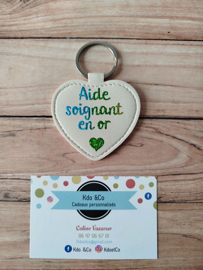 Porte-clé similicuir coeur aide soignant en or - photo numéro 1