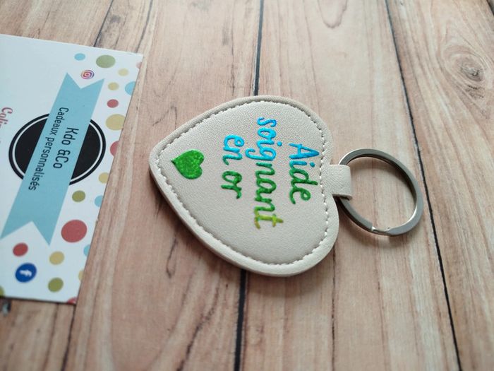 Porte-clé similicuir coeur aide soignant en or - photo numéro 2
