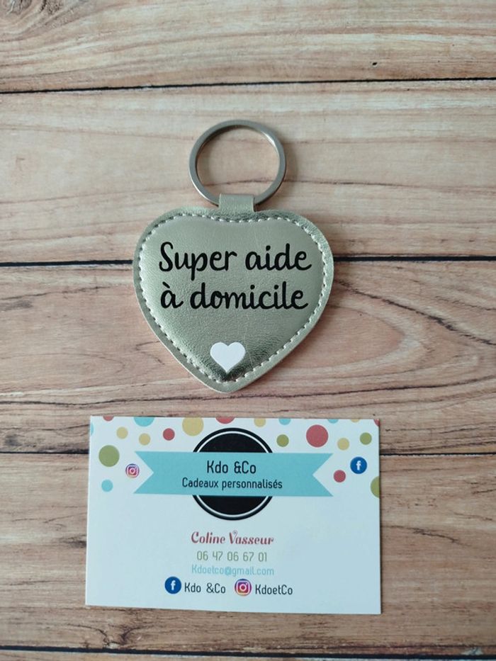 Porte-clé similicuir coeur super aide à domicile - photo numéro 1