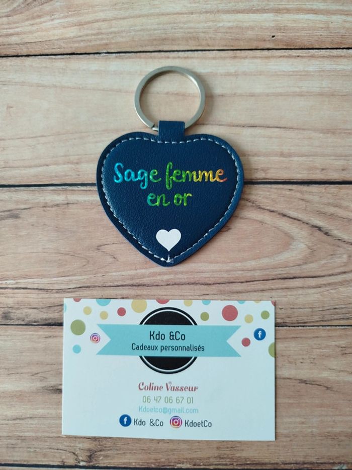 Porte-clé similicuir coeur sage femme en or - photo numéro 1