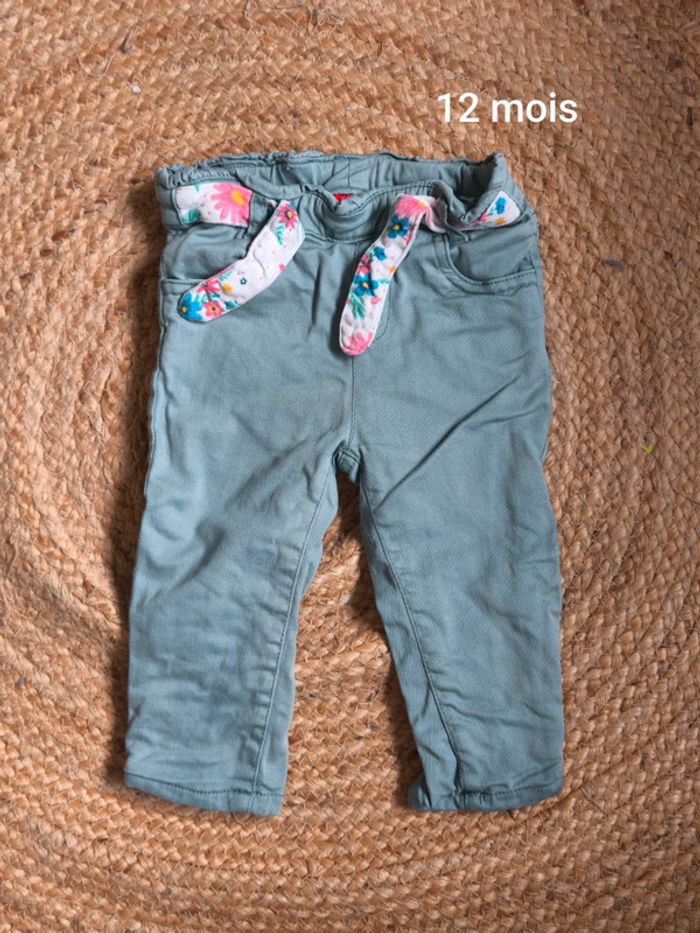 Pantalon kaki avec ceinture fleuri 12 mois #12moisfillealexiaguillou2206