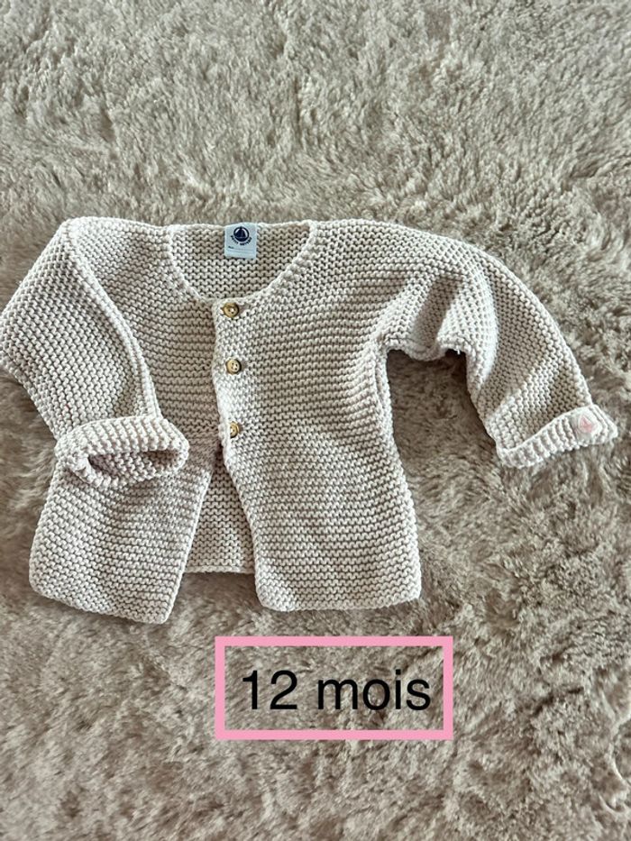 Gilet , fermeture par boutonnage . Couleur crème / beige Petit bateau 12 mois #12moisfillealexiaguillou2206
