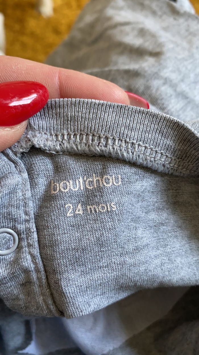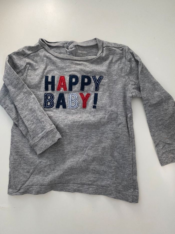 tee shirt a manches longues gris «  happy baby » , toute petite tache à la manche ( voir photo ) marque : bout’chou taille : 24 mois ( 2 ans ) #24moisgarconalexiaguillou2206