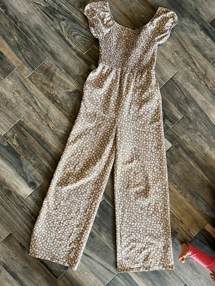 Combinaison fleuri marron glacé et blanc Reprise sur toute petite partie derrière , ne se voit pas porté Taille XXS #12ansfillealexiaguillou2206