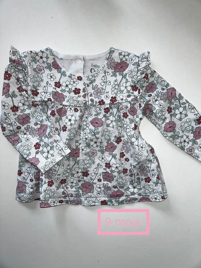Tee shirt manches longues fleuri . Volants aux épaules Taille 6/9 mois mais taille comme un 9 mois #9moisfillealexiaguillou2206