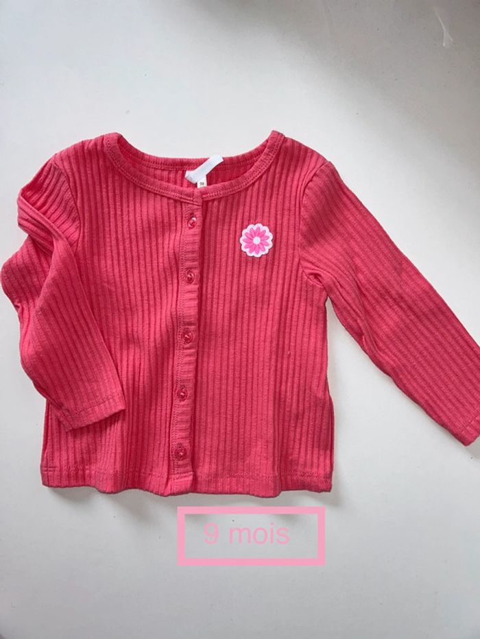 Gilet rose avec petite fleur , très peu porté Orchestra 9 mois #9moisfillealexiaguillou2206