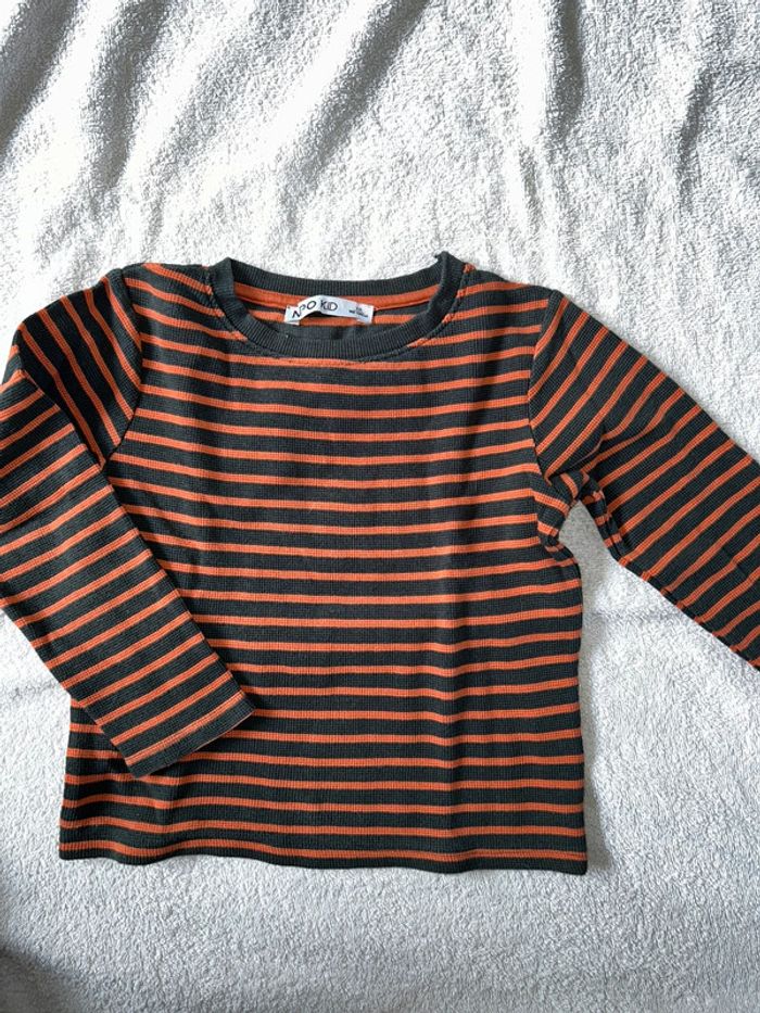 Pull fin à rayures orange et gris foncé 5 ans #5ansgarconalexiaguillou2206