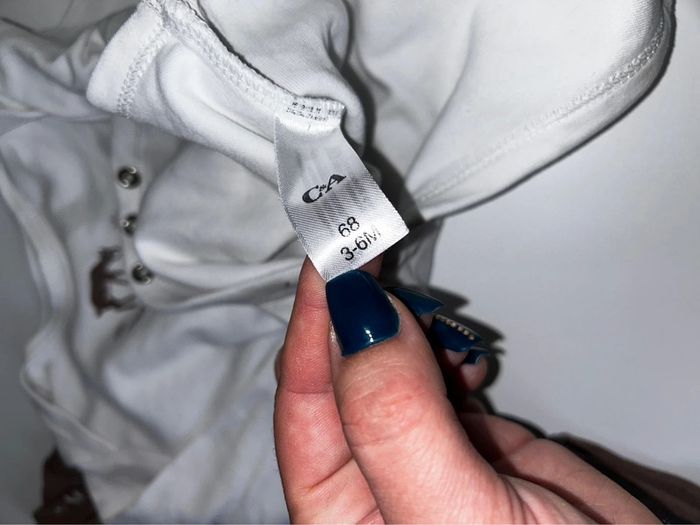 Lot de deux bodies manches longues. Le blanc est taché en bas à l intérieur ( voir photo ) Sinon ok 3-6 mois mais taille grand , comme un 6 mois #6moisfillealexiaguillou2206