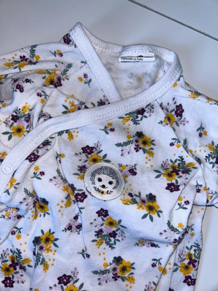 Lot de deux bodies manches longues , motifs hérissons et fleurs ouverture cache cœur 3 mois #3moisfillealexiaguillou2206