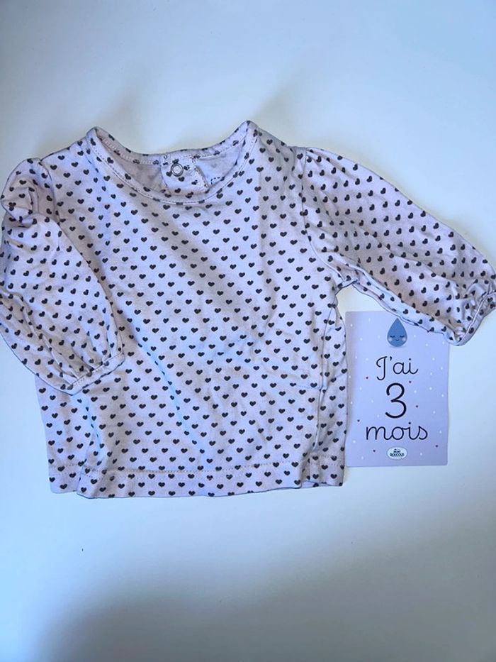 Tee shirt manches longues, rose pale avec petits cœurs 3 mois #3moisfillealexiaguillou2206