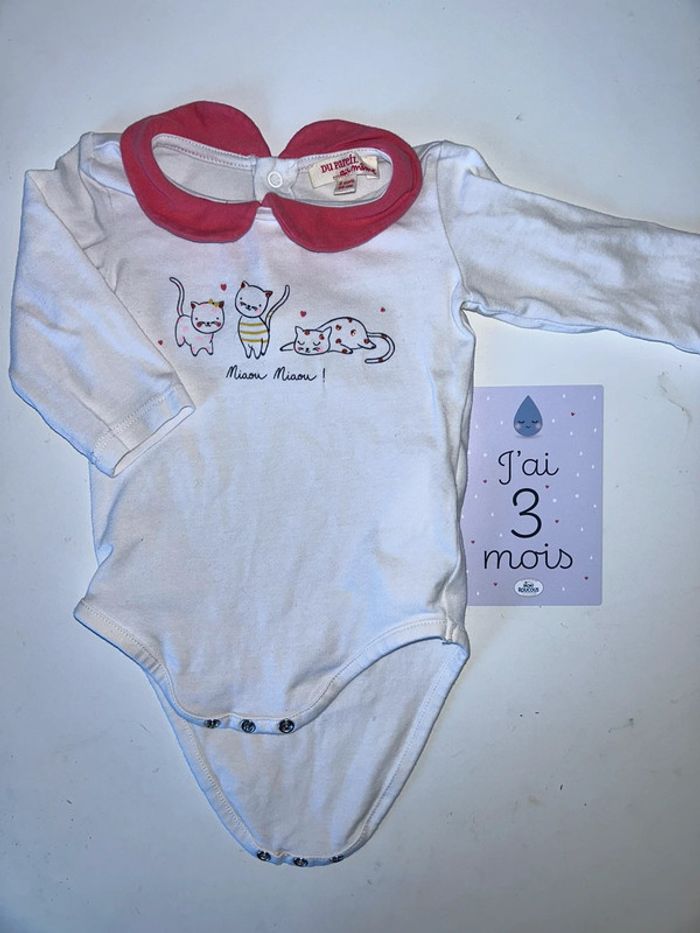 Bodie manches longues «  chat » avec col Claudine Du pareil au même 3 mois #3moisfillealexiaguillou2206
