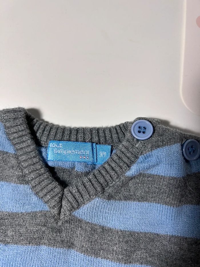 Pull col V , rayé gris et bleu 3 mois #3moisgarconalexiaguillou2206