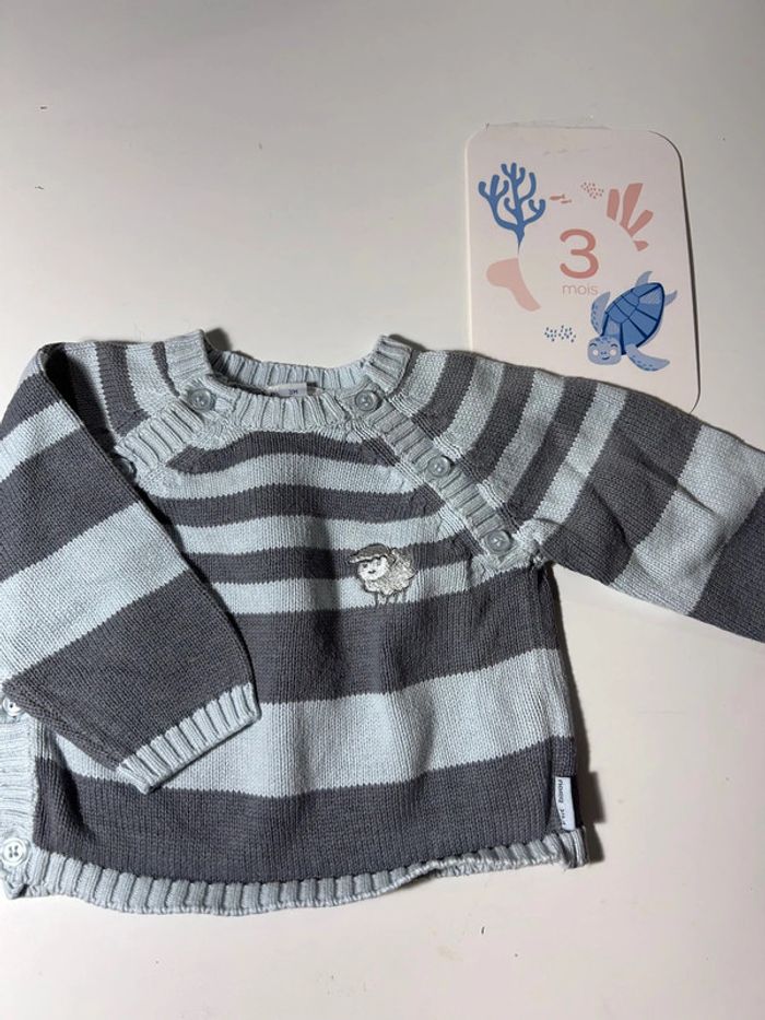 Pull , ouverture par devant «  mouton » 3 mois #3moisgarconalexiaguillou2206