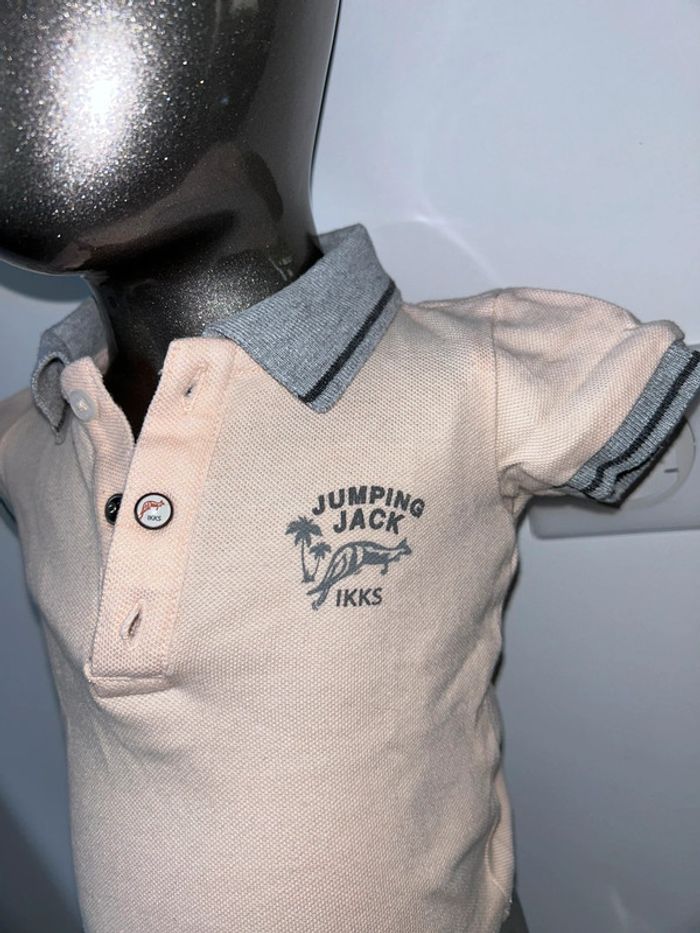 Polo manches courtes orange très pale et gris IKKS 3 mois #3moisgarconalexiaguillou2206