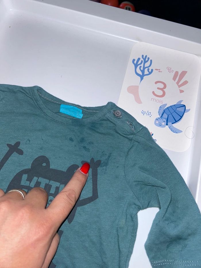 Tee shirt manches longues « monstre » . Quelques taches 3 mois #3moisgarconalexiaguillou2206