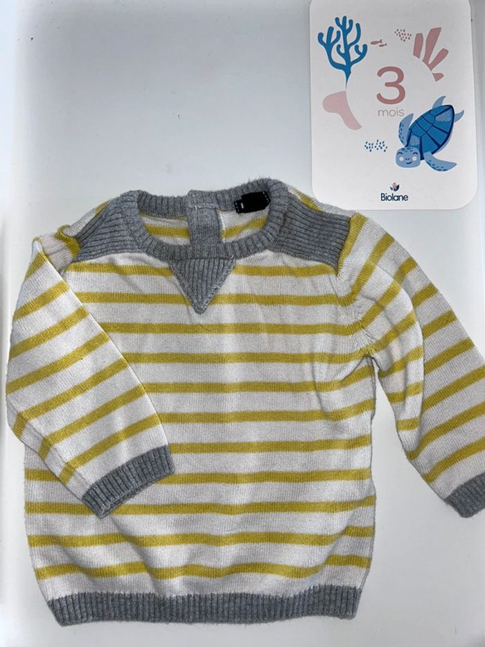 Pull rayé jaune et blanc 3 mois #3moisgarconalexiaguillou2206