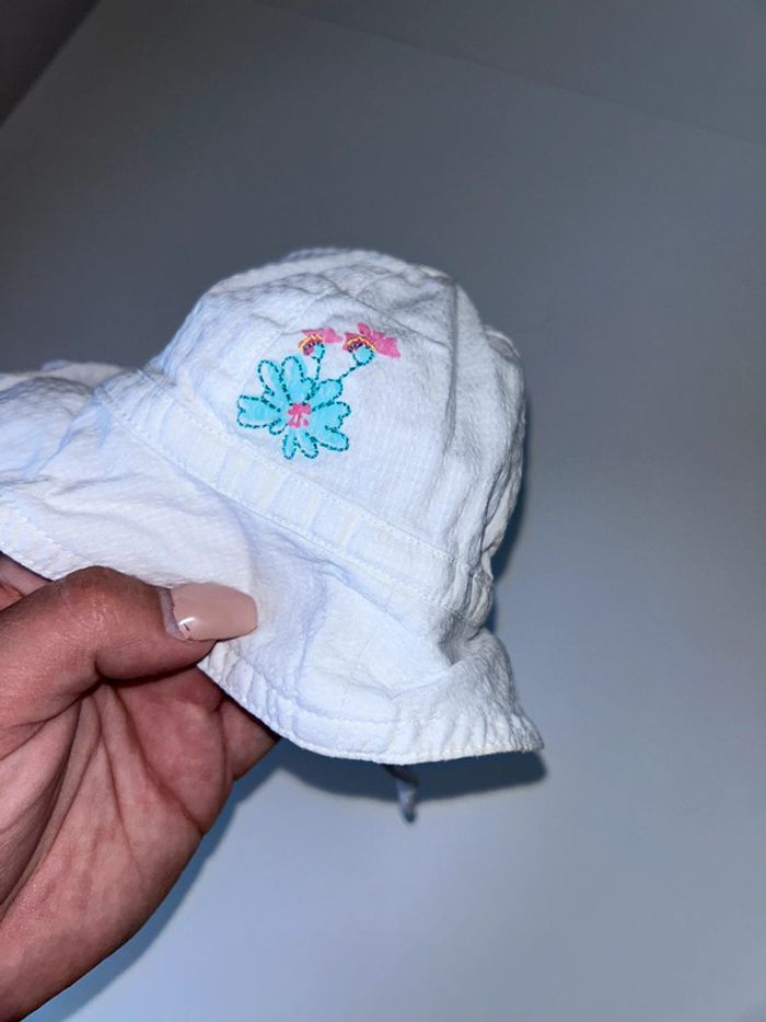 Chapeau blanc avec fleur orchestra Taille 38 cm #1moisfillealexiaguillou2206