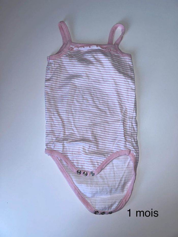 Bodie a bretelles blanc et rose clair 50/56 - 1 mois #1moisfillealexiaguillou2206