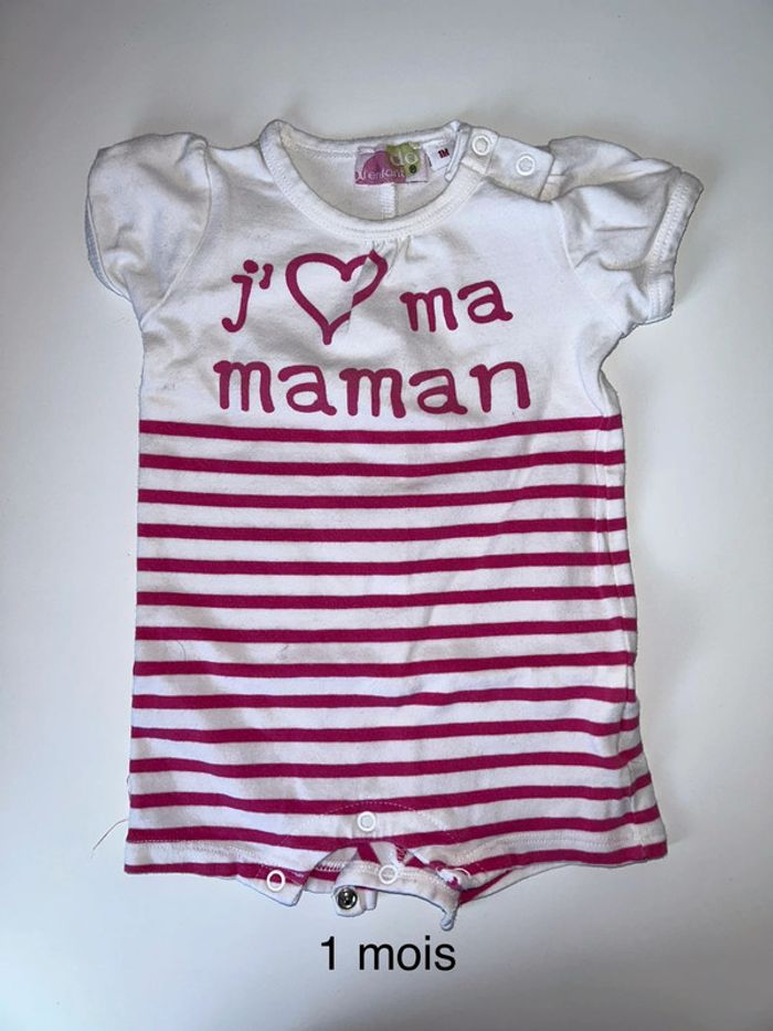 Barboteuse / combishort «  j’aime ma maman » 1 mois #1moisfillealexiaguillou2206