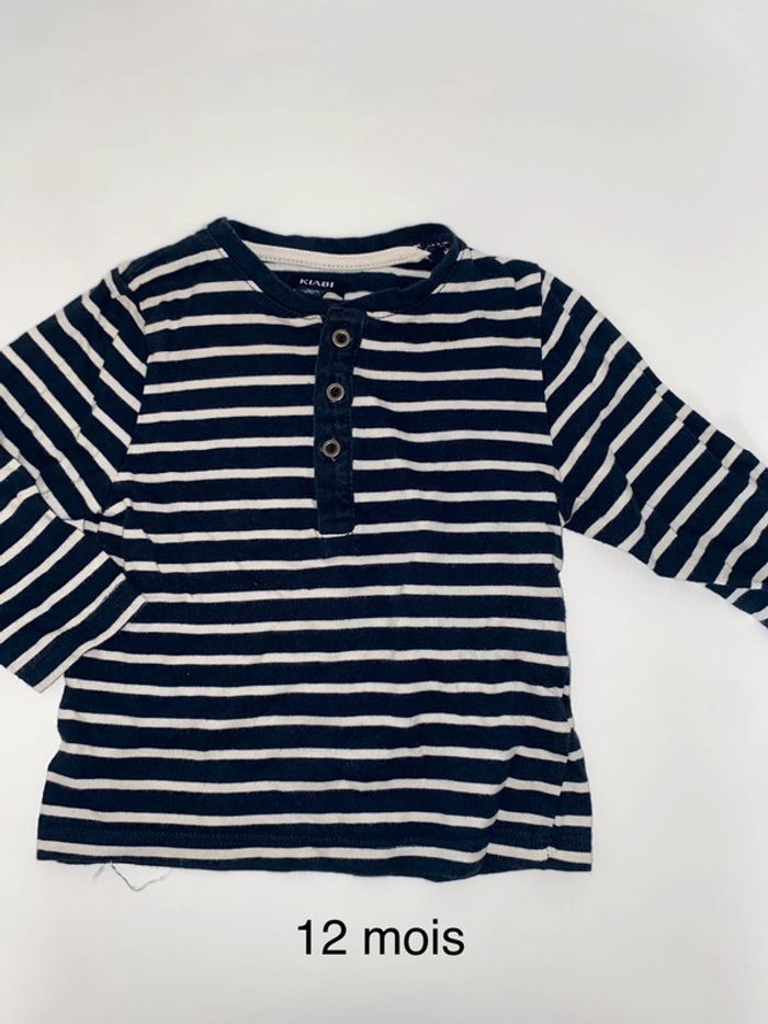 Tee shirt manches longues , «  marinière » 12 mois #12moisgarconalexiaguillou2206