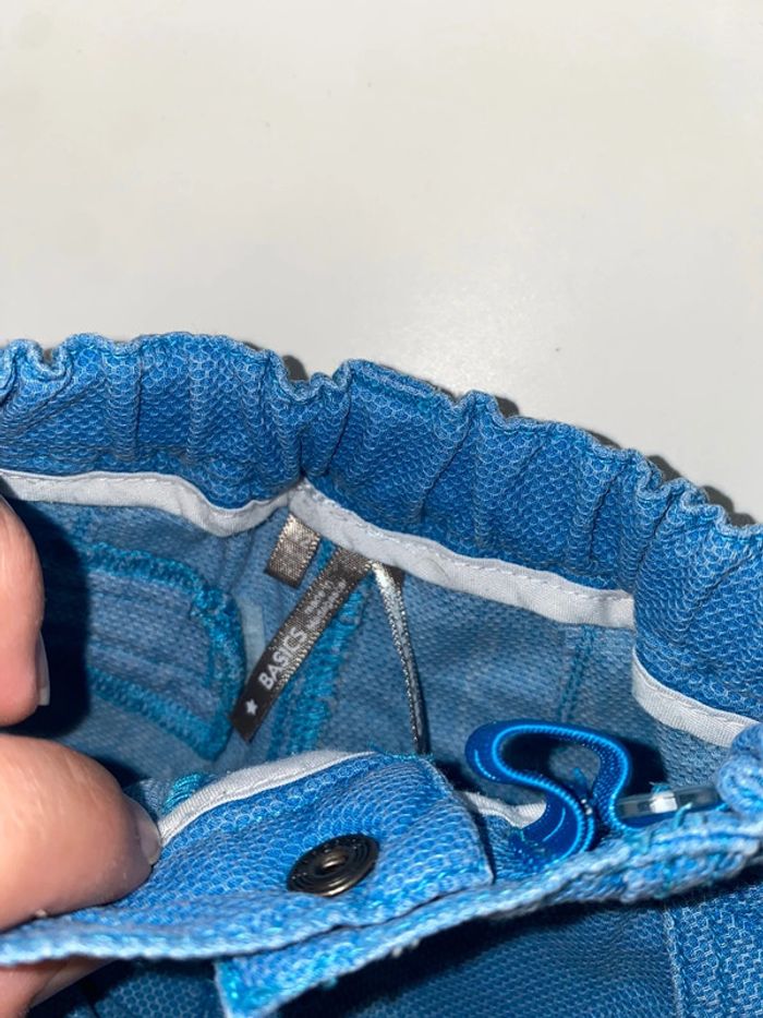 Short bleu clair , réglable à la taille Abîmé aux genoux mais avec un ourlet cela ne se voit plus ( voir photo ) . Sinon le reste ok Orchestra 12 mois #12moisgarconalexiaguillou2206