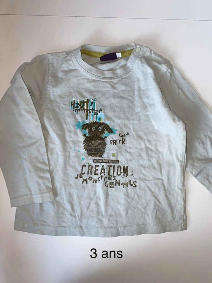Tee shirt manches longues «  monstre » Toute petite reprise sur une manche , ne se voit quasiment pas porté . Sinon ok pour le reste Sergent major 3 ans #3ansgarconalexiaguillou2206