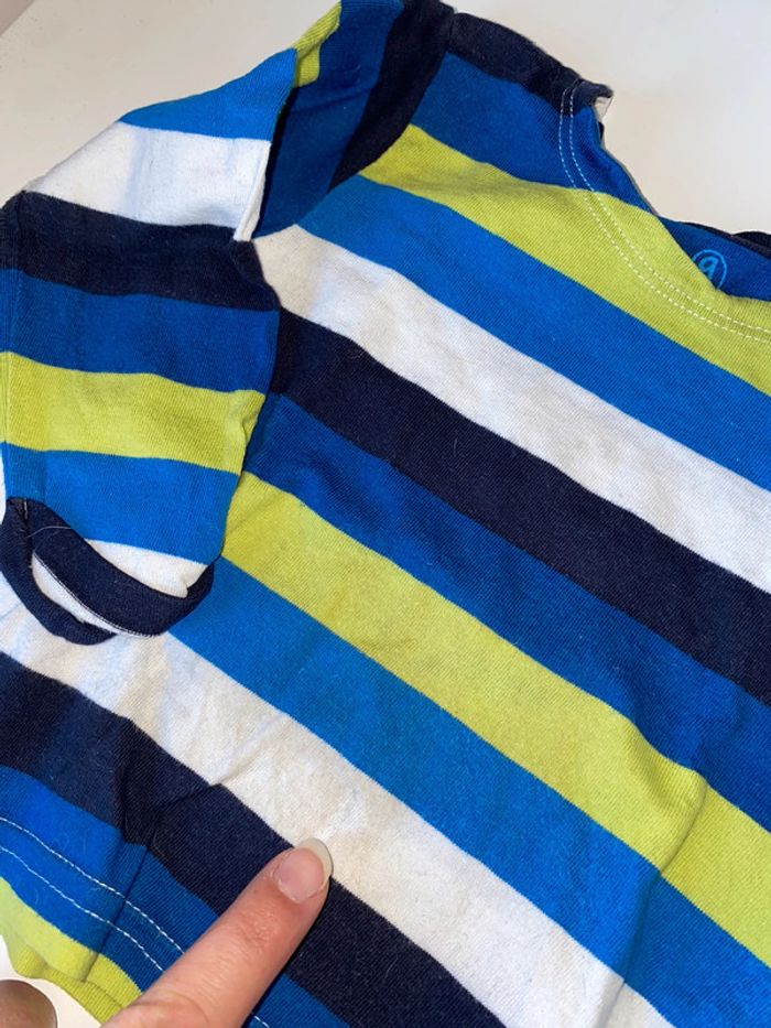 Tee shirt a rayures colorées Une tache très très légère devant , j’ai meme du mal a la prendre en photo . ( voir photo ) 9 mois #9moisgarconalexiaguillou2206