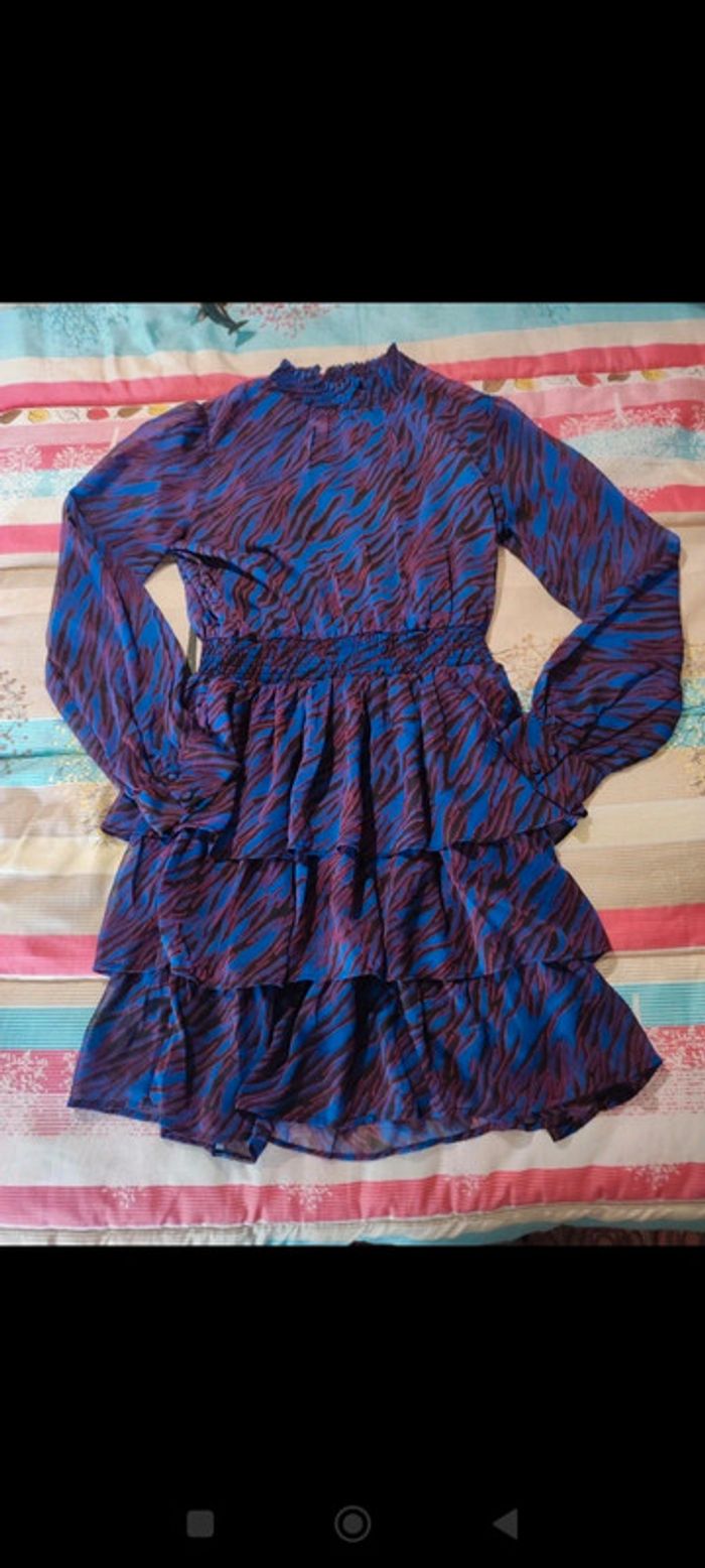 En très bon état peu portée robe légère en voile avec robe débardeur noire dessous pour éviter la transparence robe été bleue rouge et noir Aisselle à aisselle 46 longueur totale 86,5 #estrella17230femmet34