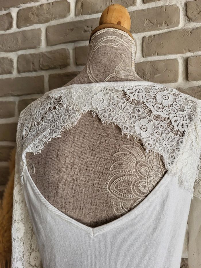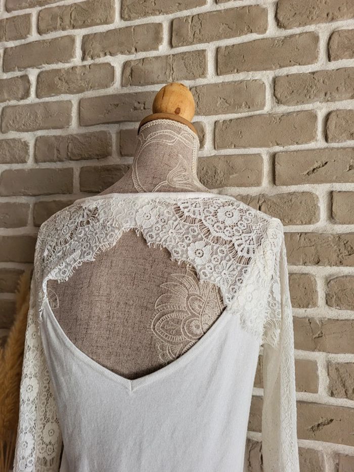 Pull léger blanc Naf Naf - manches en dentelle et décolleté dans le dos - photo numéro 4