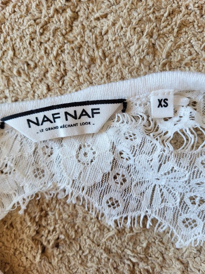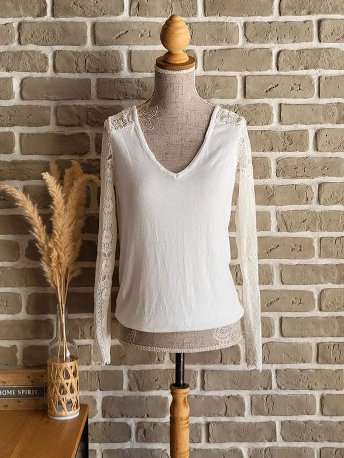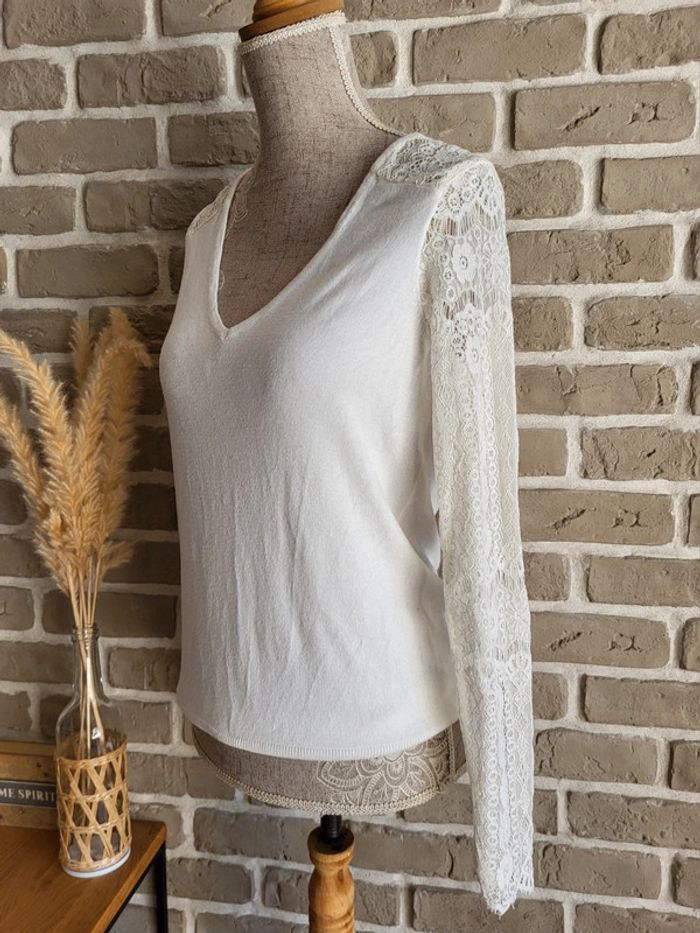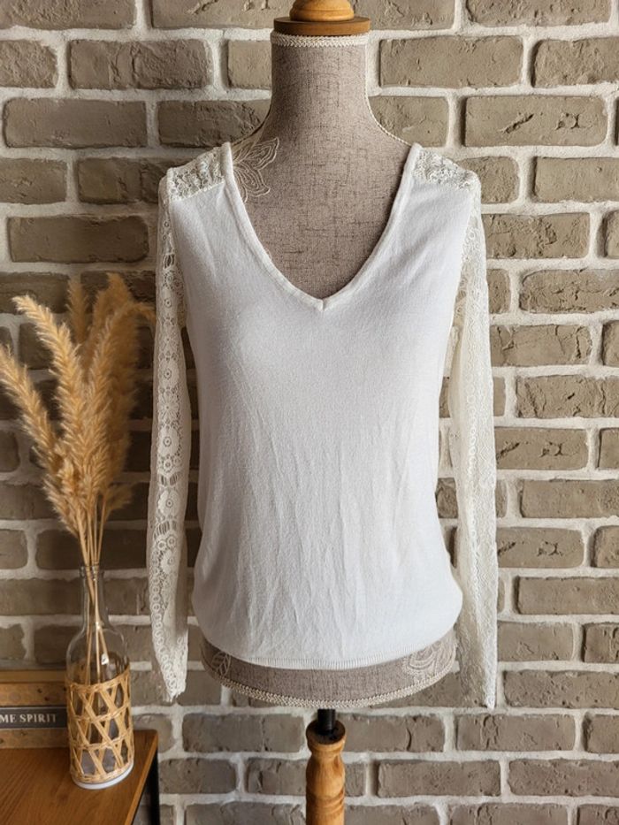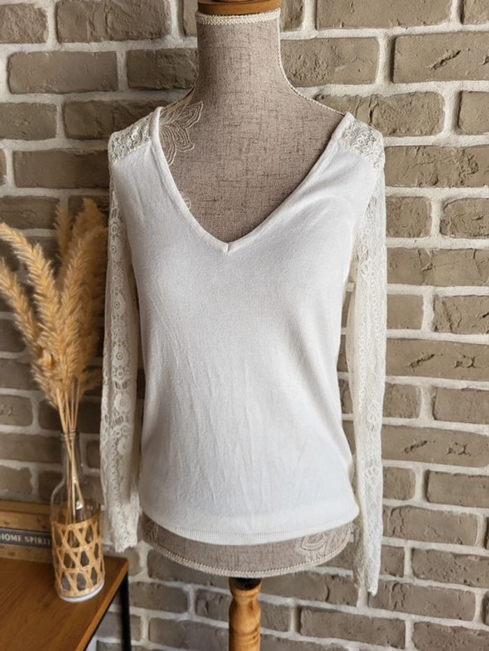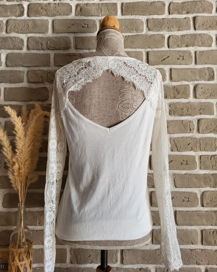 Pull léger blanc Naf Naf - manches en dentelle et décolleté dans le dos - photo numéro 1