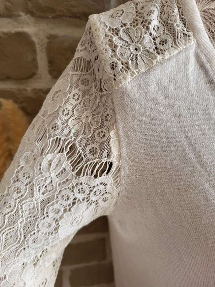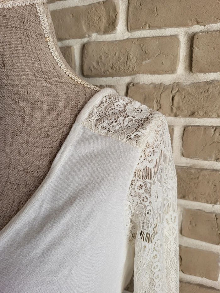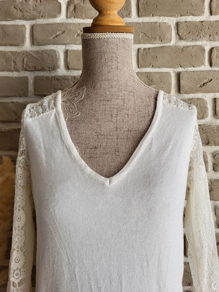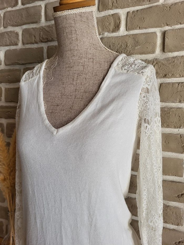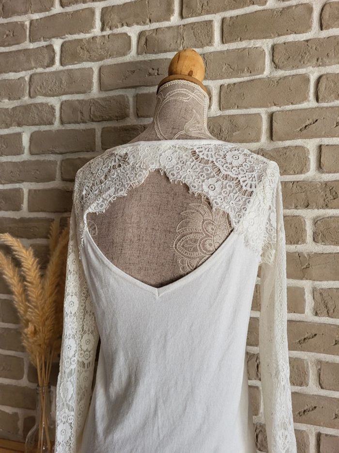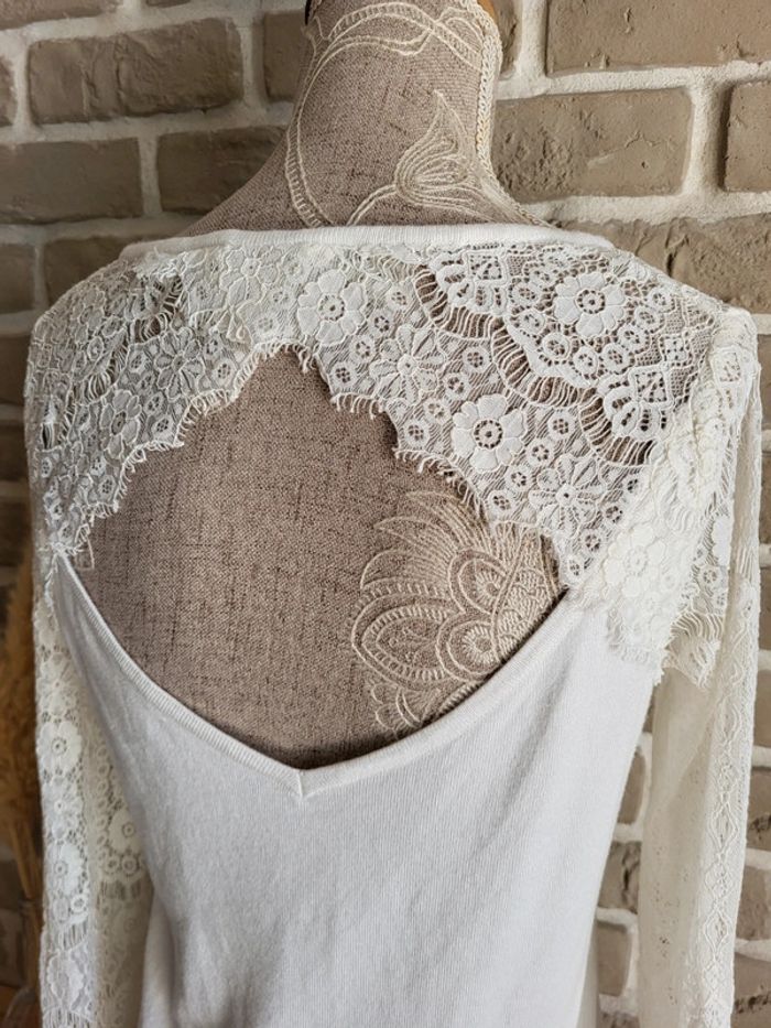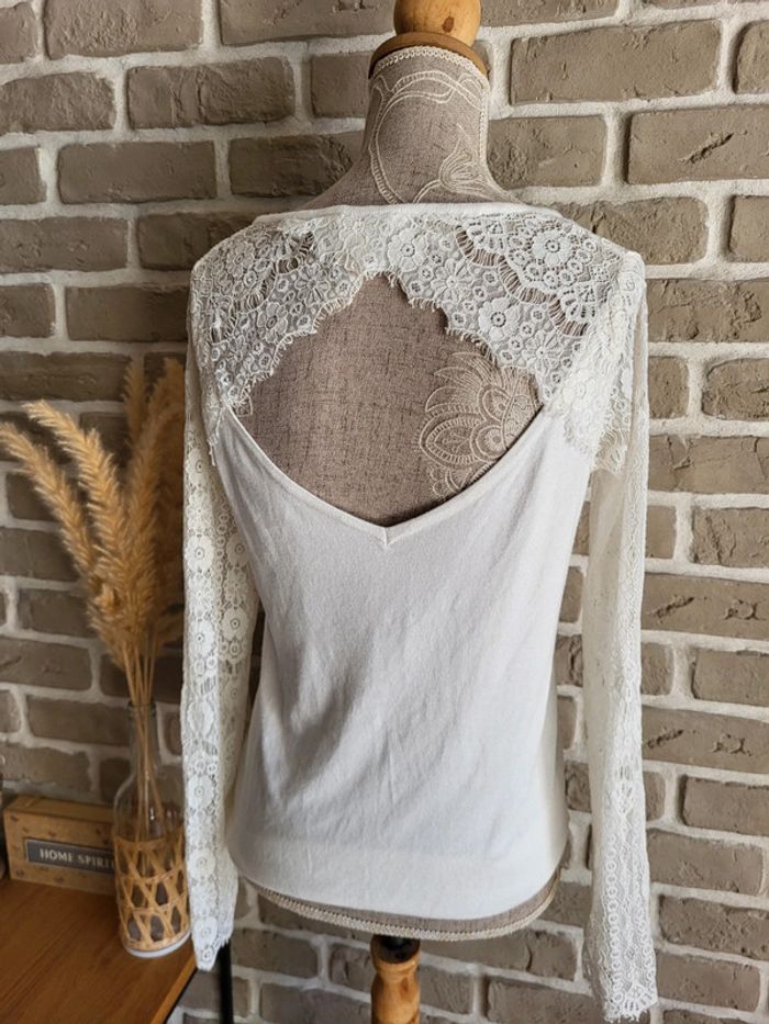 Pull léger blanc Naf Naf - manches en dentelle et décolleté dans le dos - photo numéro 2