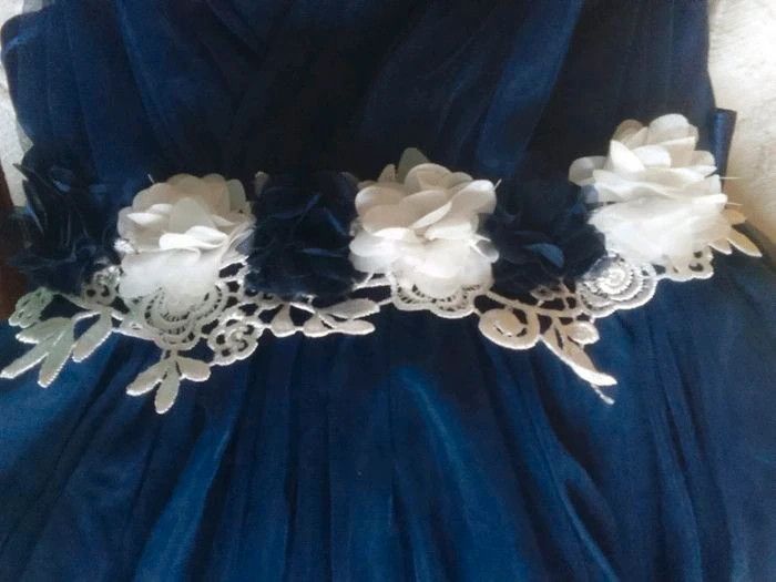Robe de cérémonie volumineuse bleu marine et blanche 4 ans - photo numéro 4