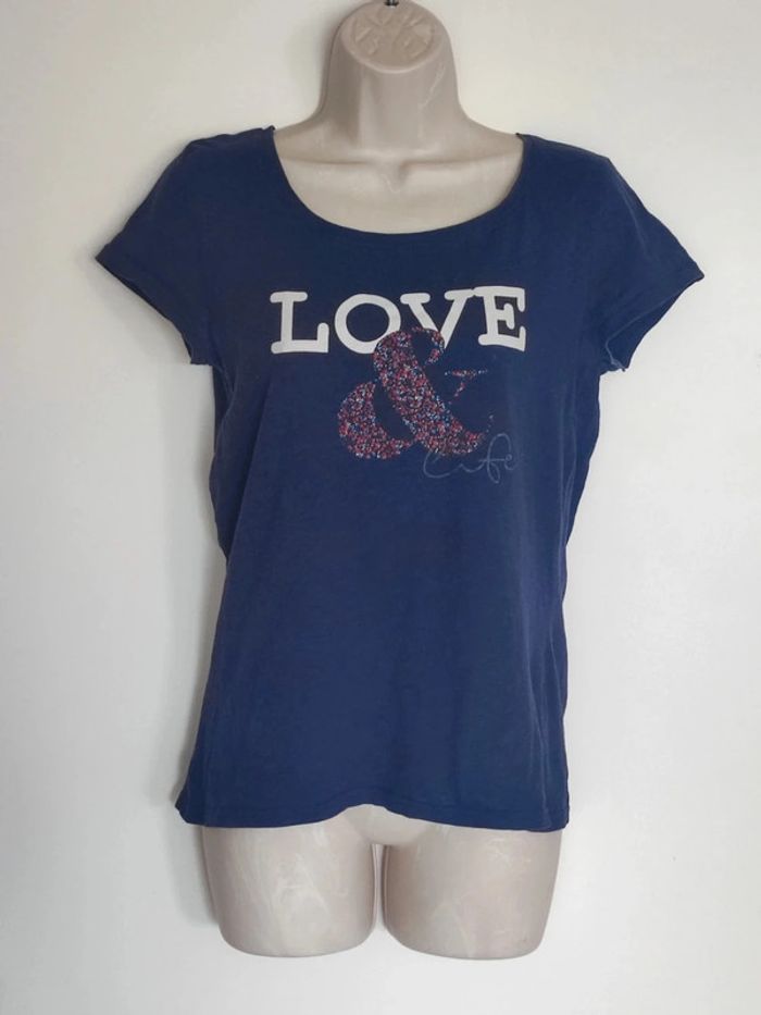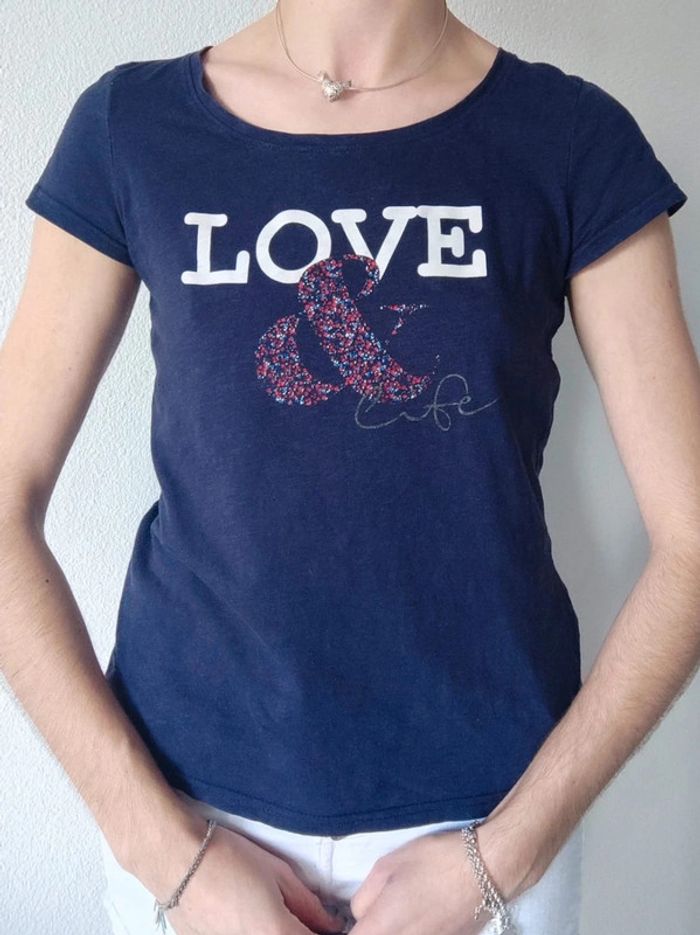 Tee-shirt bleu marine love & life rouge blanc / Tissaia - 34/XS à 36/S - photo numéro 1