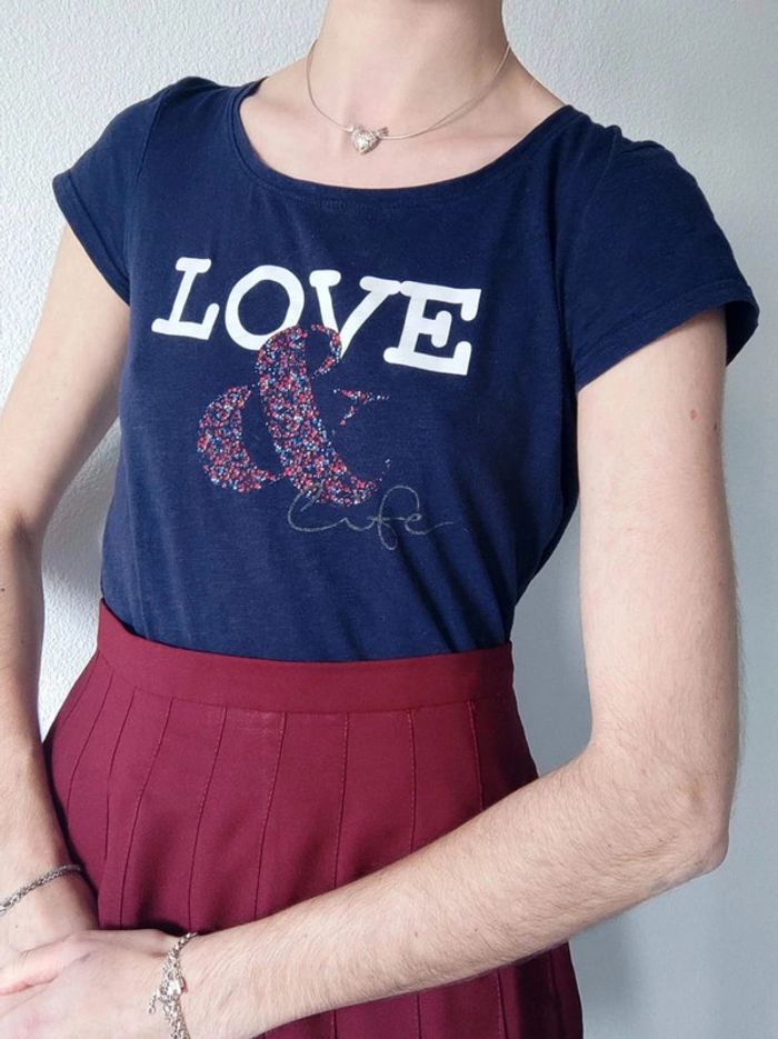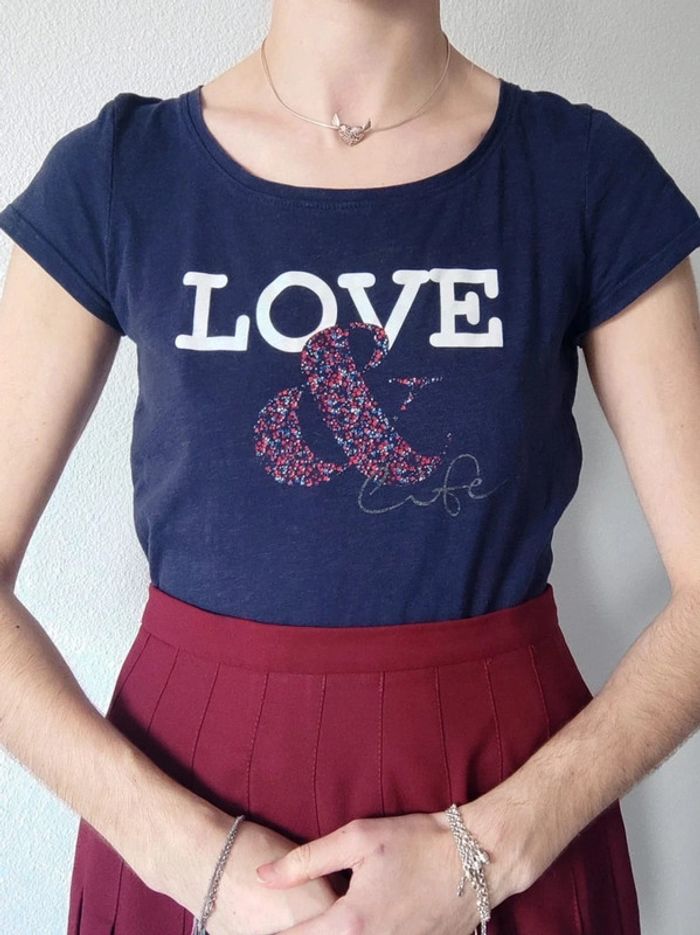 Tee-shirt bleu marine love & life rouge blanc / Tissaia - 34/XS à 36/S