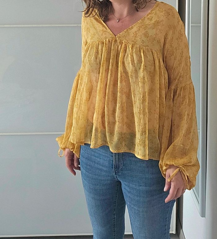 📌Lot 20% de remise dès 5 articles Blouse en voile, jaune à fleurs, manche ballon, très léger, légèrement transparent ➡️Largeur à plat sous les bras47 cm ➡️Longueur 61 cm ⭐Excellent état ✈Envoi rapide des colis 💗 Abonnez vous à mon profil, nombreux articles ajoutés régulièrement ! #laetitresors_blouse36 #laetitresors #blouse #jaune #fleurie #fleur #voile #grace #mila #chemisier #chemise #manche #ballon #fin #leger #transparent #grace #mila