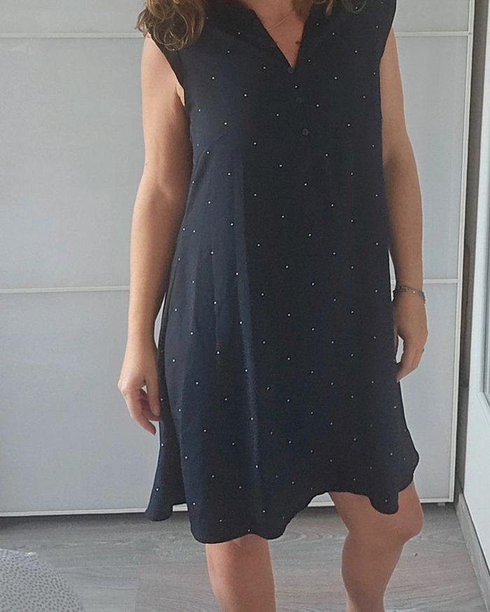 📌Lot 20% de remise dès 5 articles, suite . . . Petit robe bleu marine à pois blanc, boutonnée sur le haut, large bretelle, très fluide et légère, ➡️Largeur à plat sous les bras 43  cm➡️ Longueur 92  cm ➡️ ⭐Excellent état ✈Envoi rapide des colis 💗 Abonnez vous à mon profil, nombreux articles ajoutés régulièrement ! 🌸Tapez Laetitresors pour voir mes autres annonces #laetitresors_robe36 #robe #mango #bleu #pois #blanc #été #large #bretelle #bouton #fluide #droite #lègère #fine #laetitresors