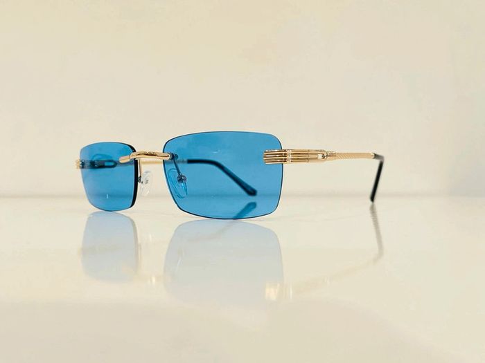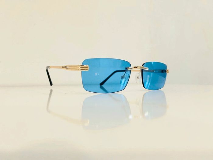 Lunette de soleil mixte percée dorée verres bleus uvprotection taille small - photo numéro 2