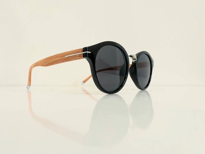 Lunette de soleil mixte Pantos noire bras effet bois UV protection catégorie 3 - photo numéro 1
