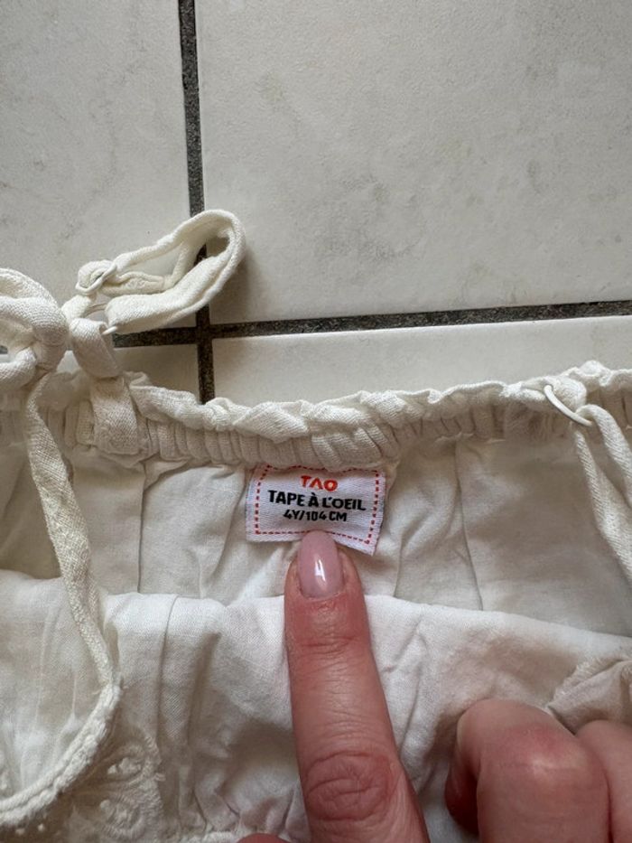 Vends haut tape a l oeil creme. Etat neuf. Taille 4 ans.