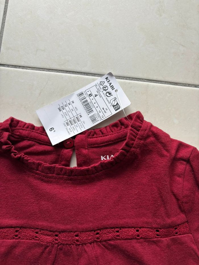 Vends tee shirt kiabi bordeaux. Etat neuf avec etiquette. Taille 4 ans.