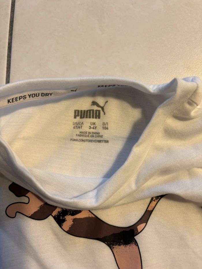 Vends tee shirt puma blanc. Etat neuf. Taille 4 ans.