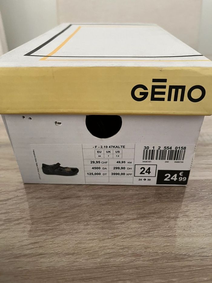 Vends ballerines gemo noires. Etat neuf. Taille 24.