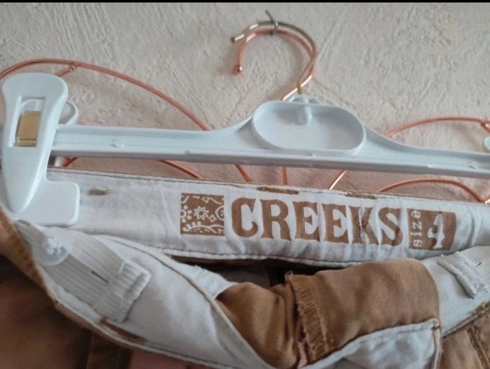 Short en toile de couleur beige, marque CREEKS, taille 4 ans. Coupe droite, confortable et pratique avec poches à l'avant et à l'arrière. Fermeture par bouton et zip . taille réglage