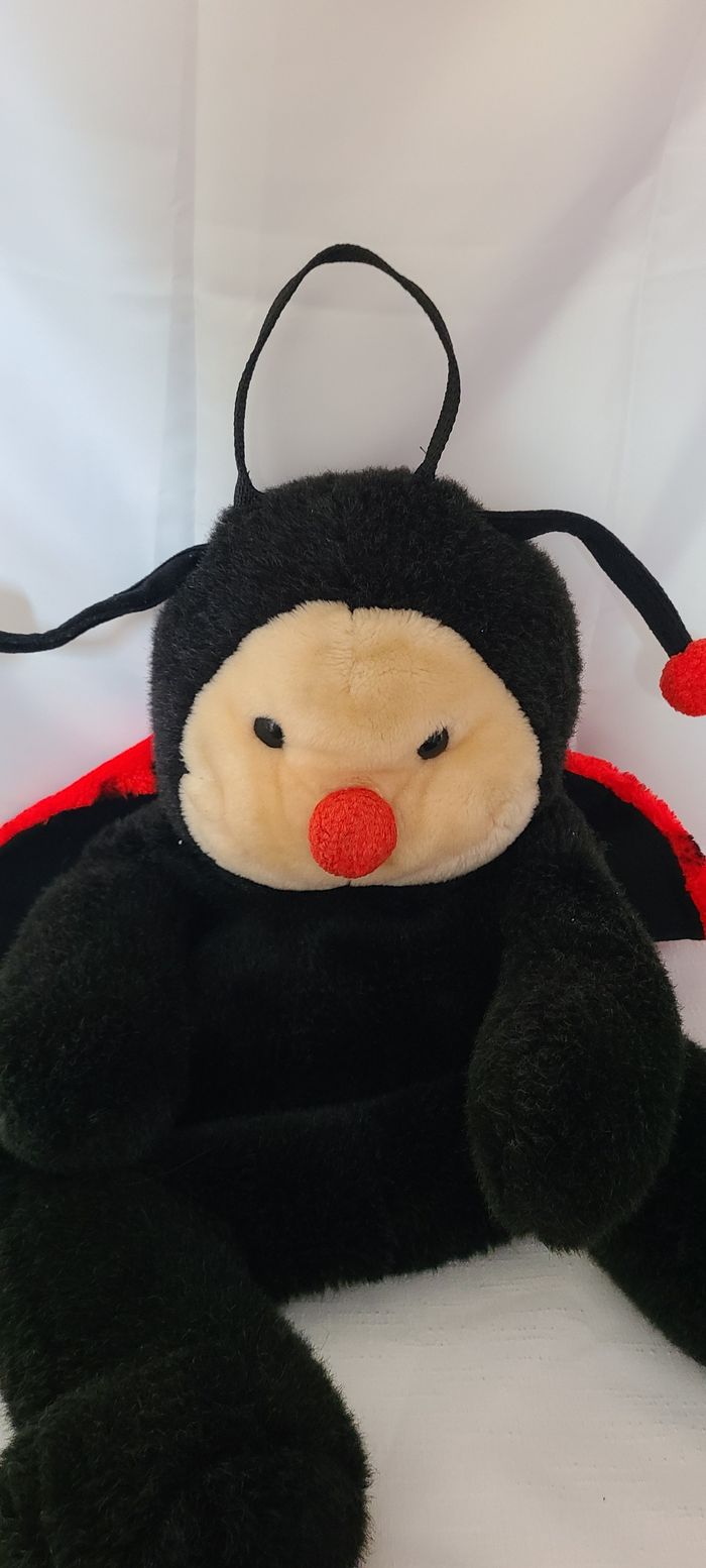 Adorable coccinelle surprise ! 55 cm de hauteur environ. Sous ses ailes se cache une poche où l'enfant pourra ranger tous ses trésors ! 👑🏅♥️ Fils dans les antennes pour leur donner la forme souhaité. Anse sur la tete pour pouvoir être accrochée